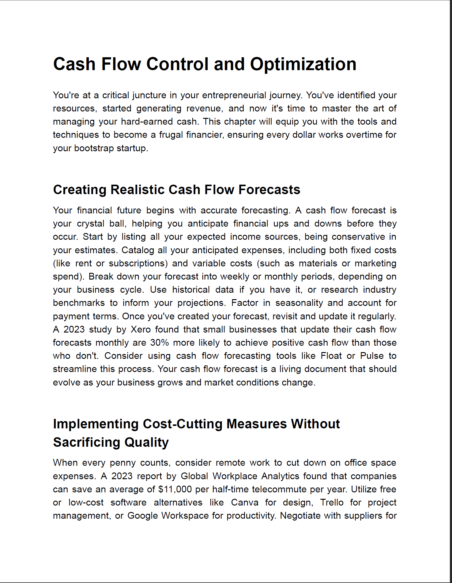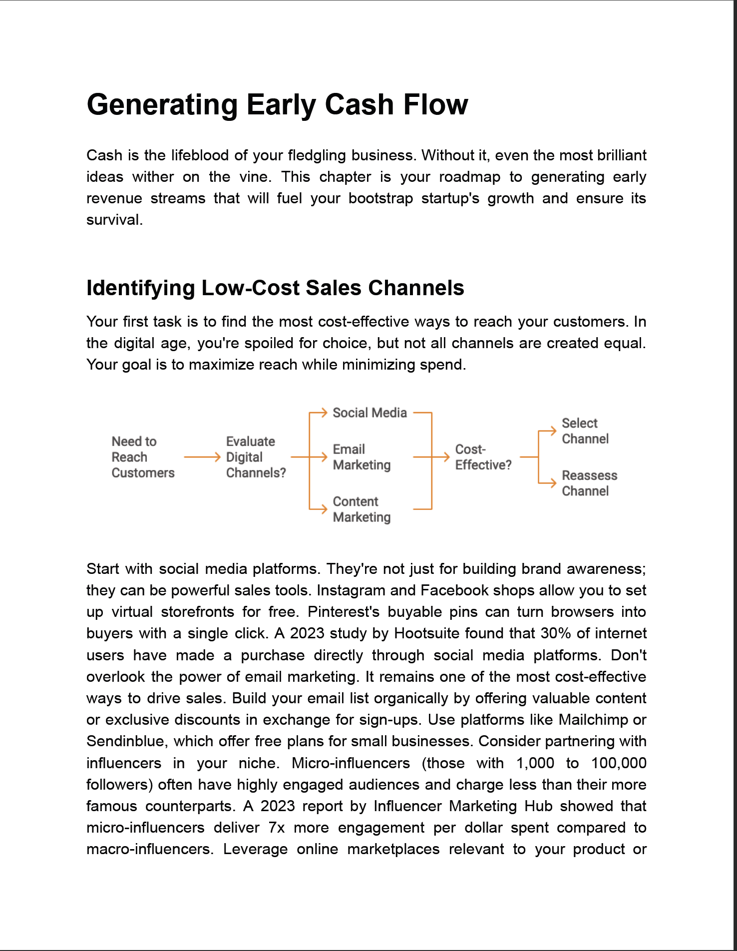 The checklist is an essential tool for you to build and grow a business without relying on outside funding. It offers easy-to-follow steps for finding resources, generating revenue, and managing cash flow, helping you create a successful startup with minimal investment.